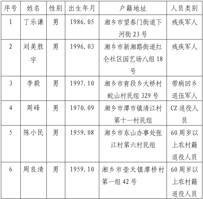 为切实提高我市享受定期抚恤补助优抚对象的数据精细化管理,确保优抚资金发放使用安全,根据湖南省退役军人事务厅、湖南省财政厅转发《退役军人事务部办公厅 财政部办公厅<关于印发享受国家定期抚恤补助优抚对象年度确认工作实施规范(试行)>的通知》(退役军人办发〔2021〕34号)文件精神,每年对享受国家定期抚恤补助待遇的优抚对象开展确认工作,2025年按照上级部署,9月至12月份为集中确认阶段,经多方联系,截止目前,已超过60日,仍有部分优抚对象(名单附后)未进行年度确认。现将有关事项公告如下: