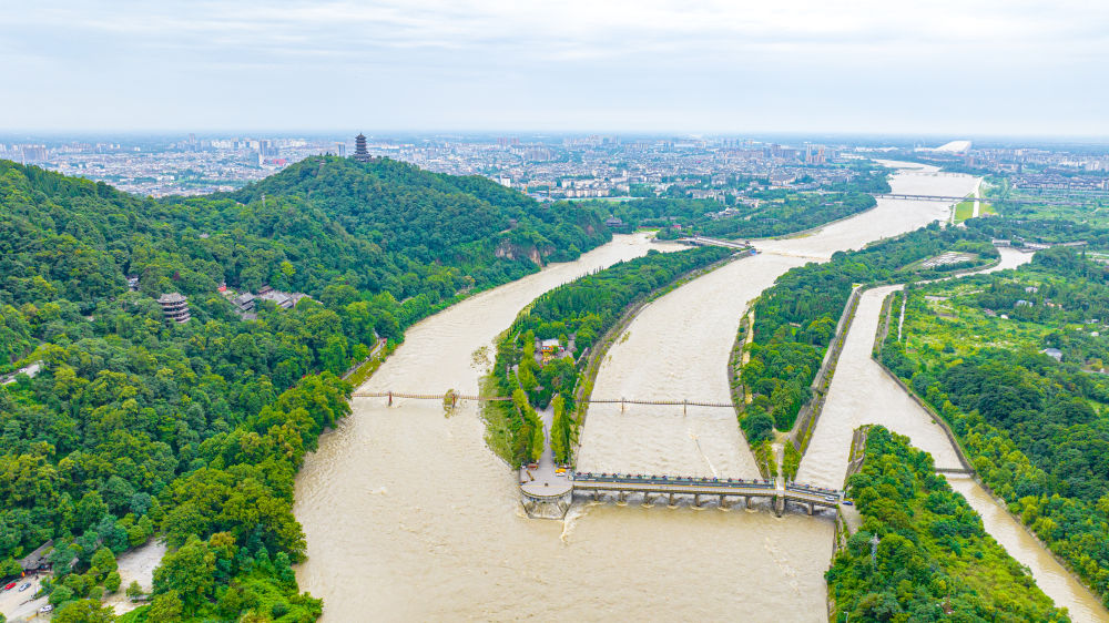 2025年7月拍摄的都江堰水利工程(无人机照片)。新华社发(何勃 摄)“鱼嘴分水堤”“飞沙堰溢洪道”“宝瓶口进水口”——都江堰的三大主体工程相互承接、浑然一体,既可以引水灌溉,又可以分洪减灾、排沙防淤。“乘势利导、因时制宜”的设计哲学,体现着古人先进的治水理念,承载着代代相传的守护精神,蕴含着人与自然和谐共生的中国智慧。