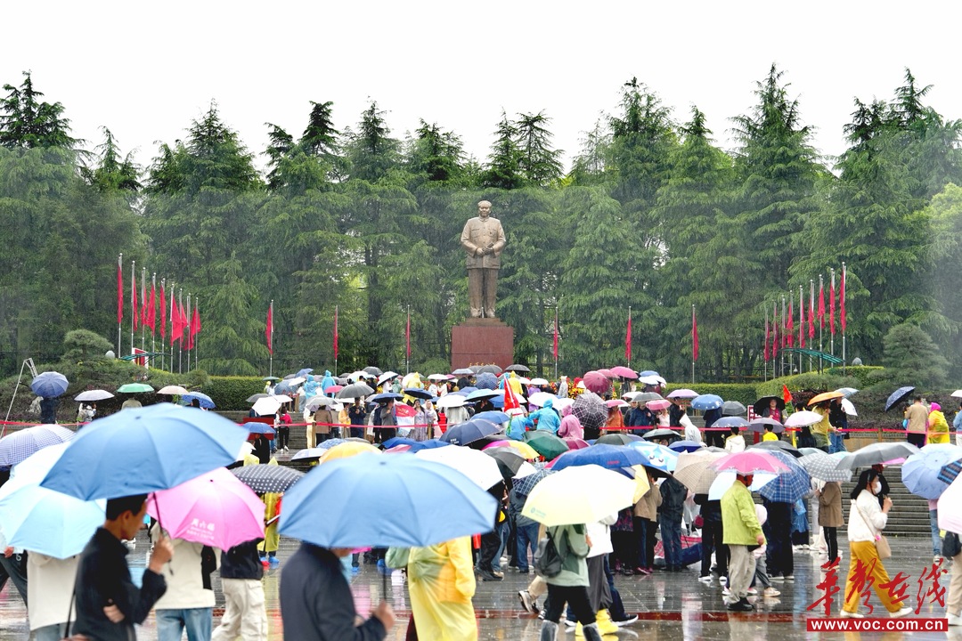 这里是毛泽东同志故居,青瓦土墙带着清晰的岁月斑痕,迎接着八方来客。大家撑着伞,井然有序地排起长队,静静感受这方土地带来的历史回响,庄重且倍感亲切。