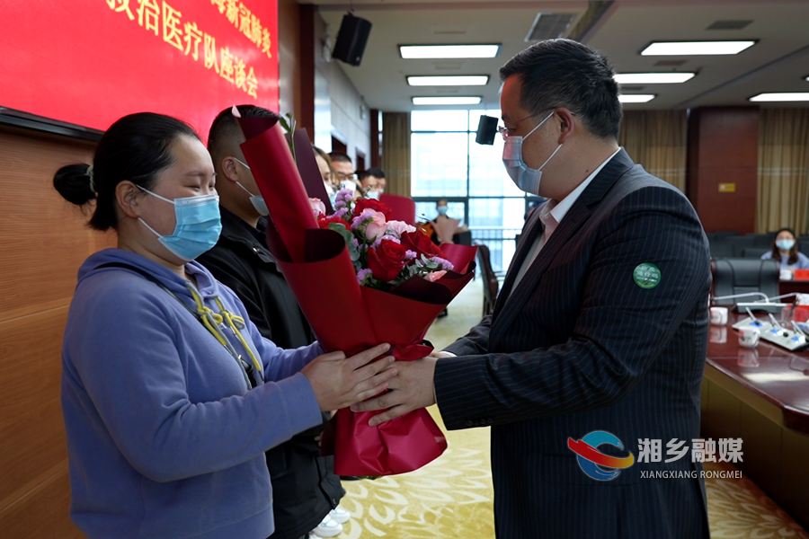 新湘乡客户端4月3日讯(湘乡融媒记者:樊洛)4月3日,湘乡市召开支援上海市新冠肺炎救治医疗队座谈会。市委副书记、市长郭勇与24名援沪医疗队成员亲切座谈,希望他们弘扬“生命至上,举国同心,舍生忘死,尊重科学,命运与共”的伟大抗疫精神,全力以赴做好医疗救治各项工作,带着使命去,乘着平安回。市领导彭湘、谢志宏、傅国强参加座谈。