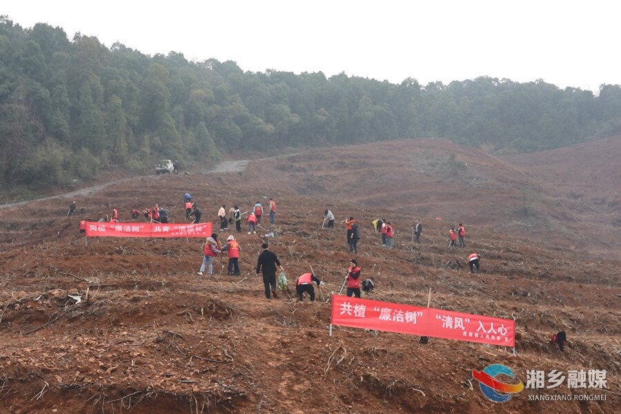 阳春三月,惠风和畅。一面面印有廉洁标语的旗帜迎风招展,与忙碌的“志愿红”交相辉映。活动现场,党员干部们热情高涨,干劲十足。大家分工协作,默契配合:有的挥锹铲土,挖坑填泥;有的扶苗校正,确保根系舒展……各个环节衔接有序,一派热火朝天的劳动景象。